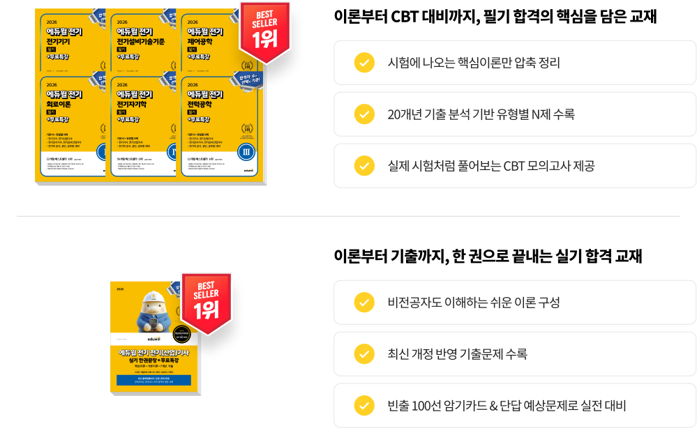 - 전기응용 및 공사재료(2019년 9월, 2020년 1월·9월, 2021년 9월, 2022년 9월, 2023년 5월, 2024년 1~6월, 7~9월, 2024년 10월, 2025년 1월, 4~5월)
